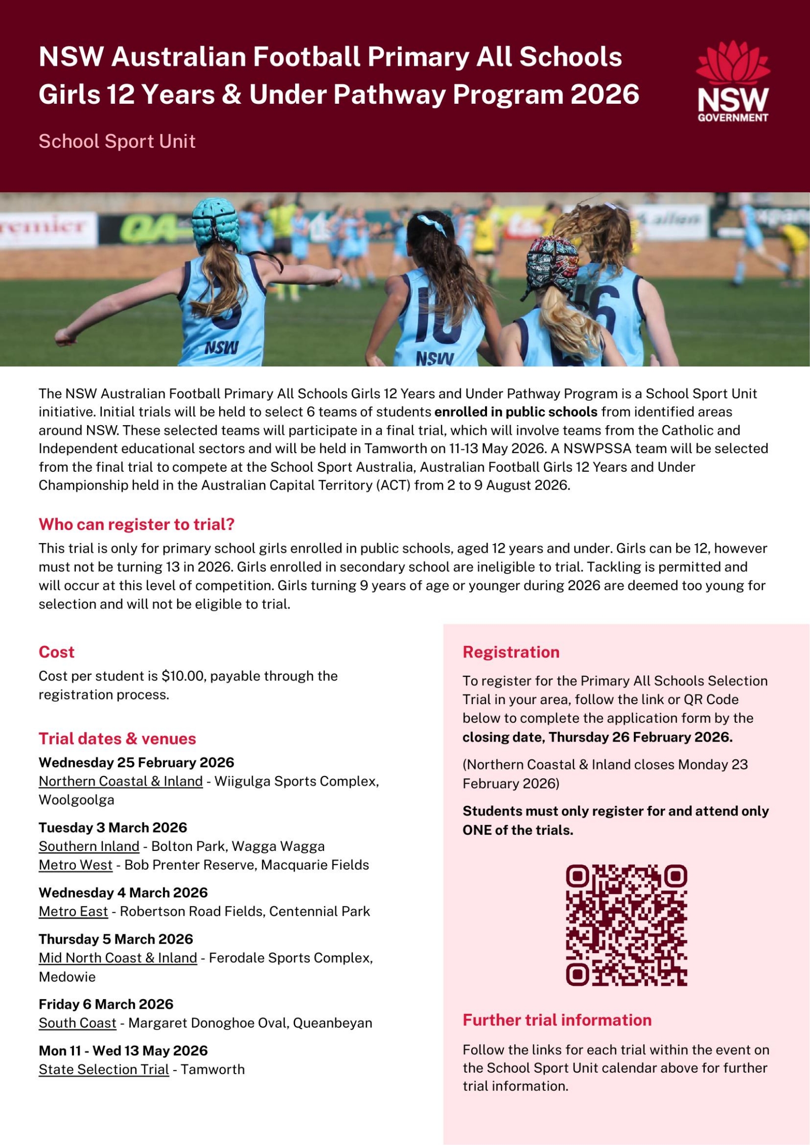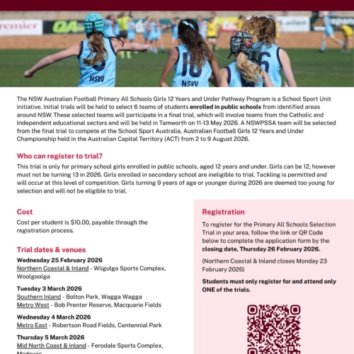 2026 NSW Australian Football Primary Girls 12 Years and Under Pathway Program